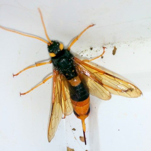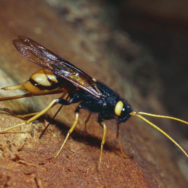 La femelle possède un long ovipositeur lui permettant de perforer profondément le bois.