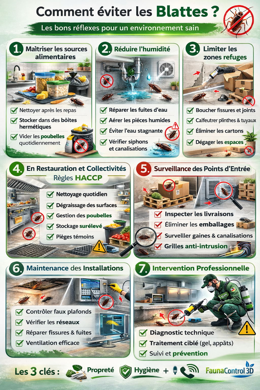 Dans les établissements alimentaires (restaurants, cuisines centrales, écoles, hôpitaux), la prévention des blattes doit être intégrée aux procédures internes.